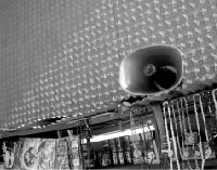 売店のトタン屋根の上のスピーカーから流れている音は何ですか? |